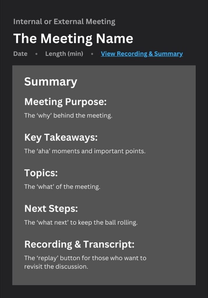 Here’s what a meeting summary looks like: