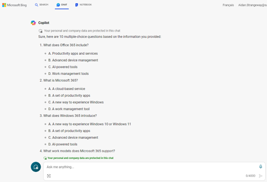 So, first I copy and paste my notes into the AI (Copilot), and then I’ll ask it to create 10 multiple-choice questions from the information I provided. Here’s the result: