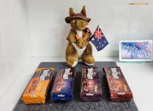 We’re celebrating our local Australian import by eating chocolate cookies and coffee!